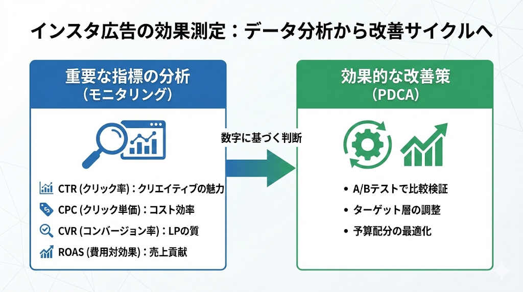 広告は「出して終わり」ではありません。配信後のデータを分析し、改善を繰り返すことで費用対効果が向上します。