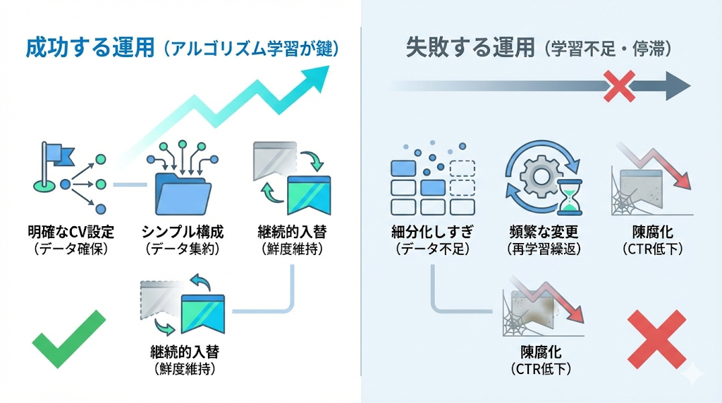 多くの広告アカウントを分析すると、成功している運用と失敗している運用には明確なパターンが存在します。