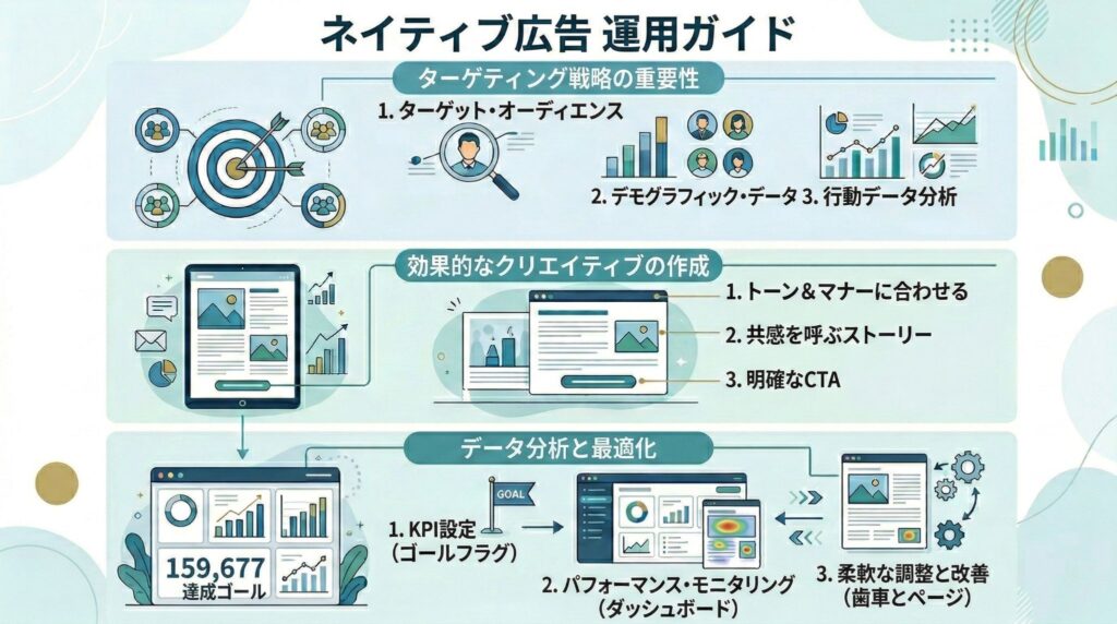 ネイティブ広告を成功に導くためには、計画的かつ戦略的な運用プロセスが必要です。具体的な実践手順を解説します。