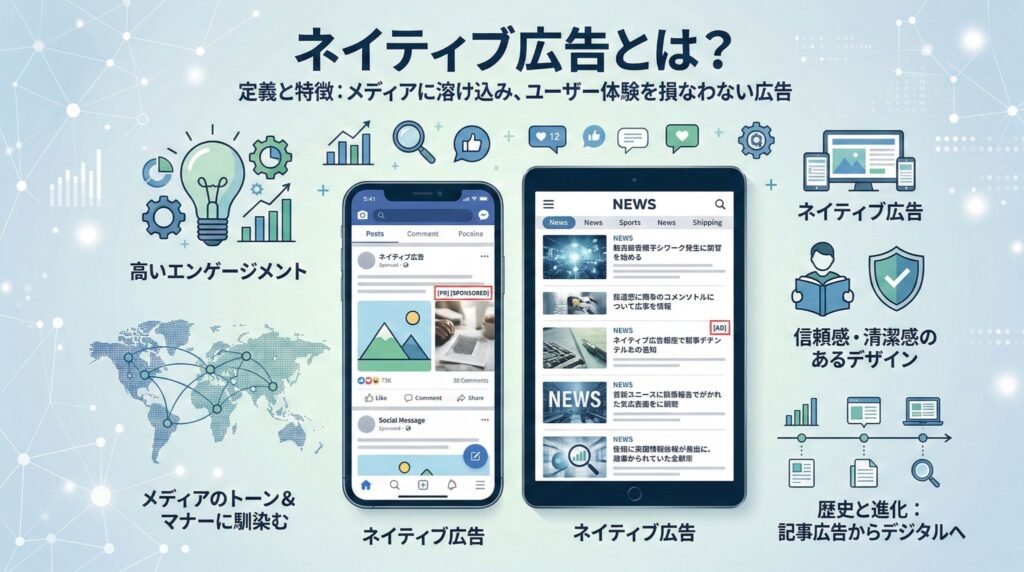 ネイティブ広告は、現代のデジタルマーケティングにおいて非常に重要な役割を担っています。まずはその基本的な定義と、これまでの広告との違いについて詳しく解説します。