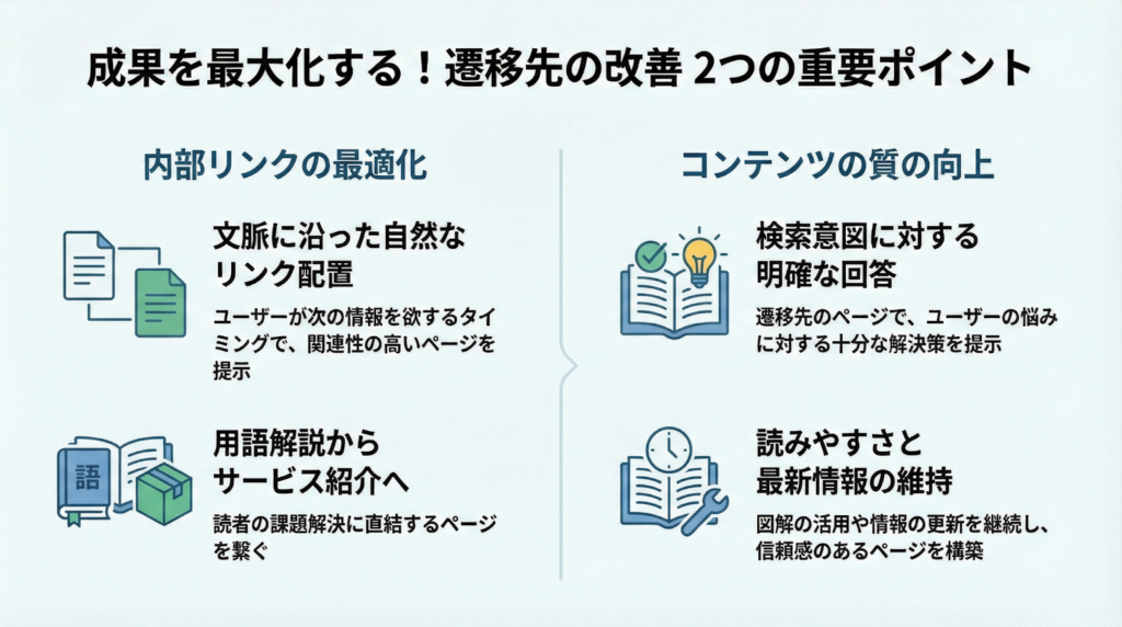 どれだけ導線が優れていても、遷移先ページのコンテンツ品質が低ければ成果にはつながりません。