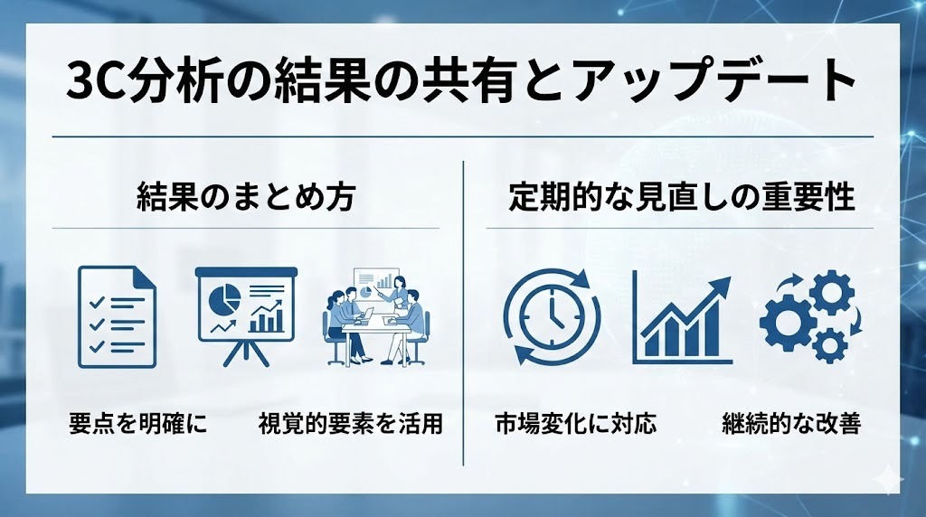 分析結果は担当者の中に留めておくのではなく、組織全体で共有し定期的に更新することが重要です。
