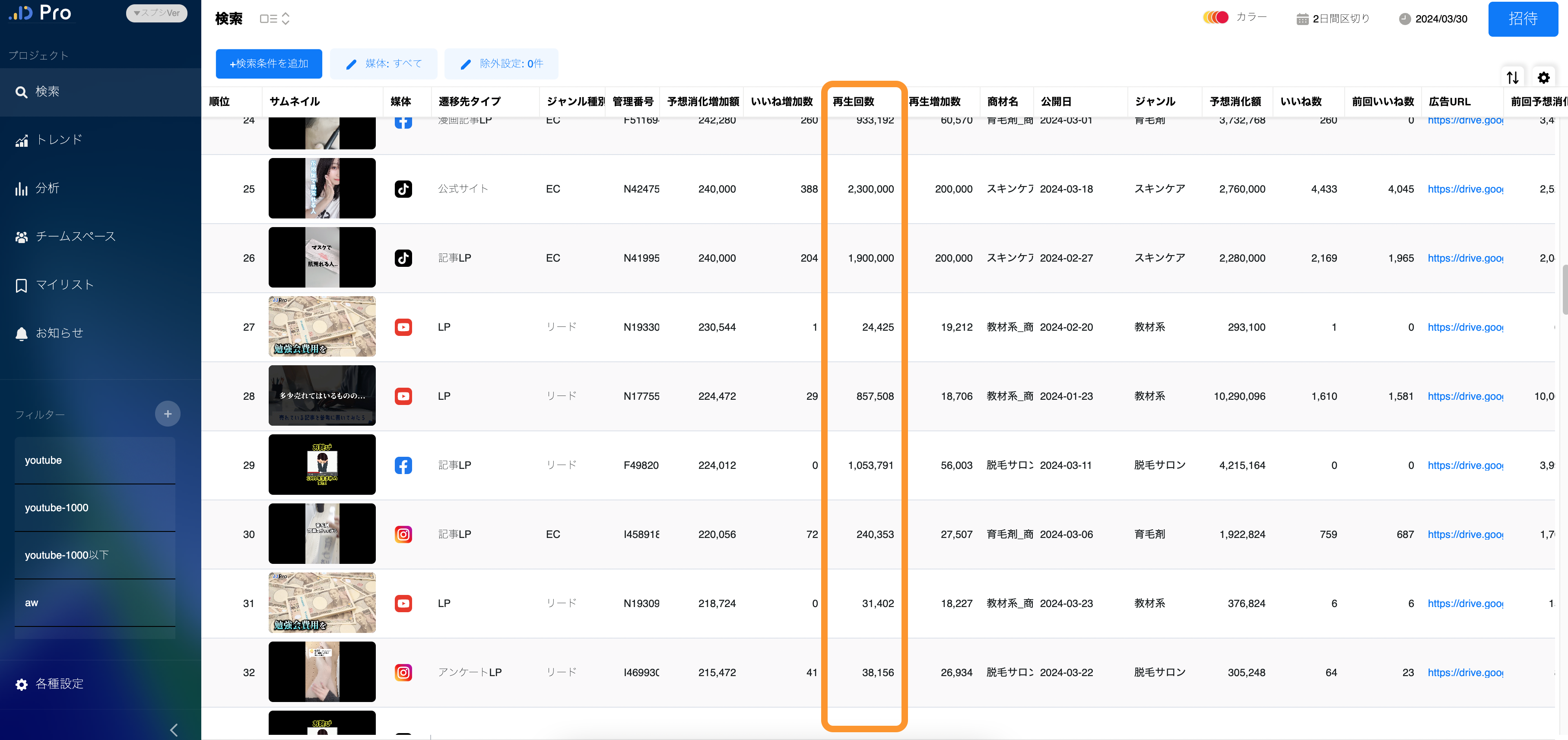 例えば、再生増加数と合わせて観察し、特定の期間で増加が確認できれば、その期間に何らかのトレンドが影響している可能性があり、これを理解することでより効果的なマーケティング戦略を立てることができます。
