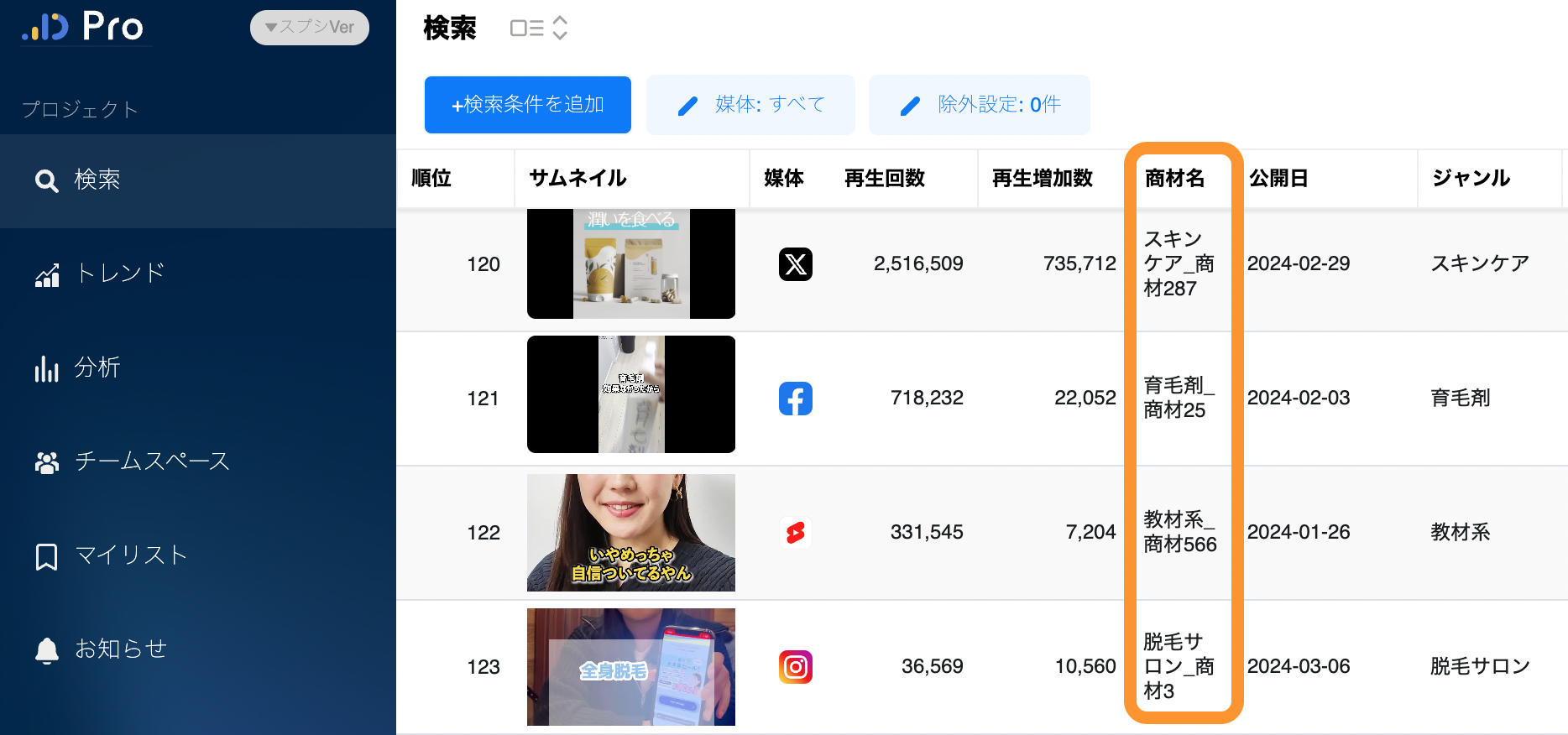 『商材名』を把握することにより、広告運用者は特定の広告がどの商品やサービスを宣伝しているかを正確に理解できます。これにより、異なる商材の広告パフォーマンスを比較分析し、どの商材がより高いエンゲージメントやコンバージョンを生み出しているかを判断することが可能になります。
